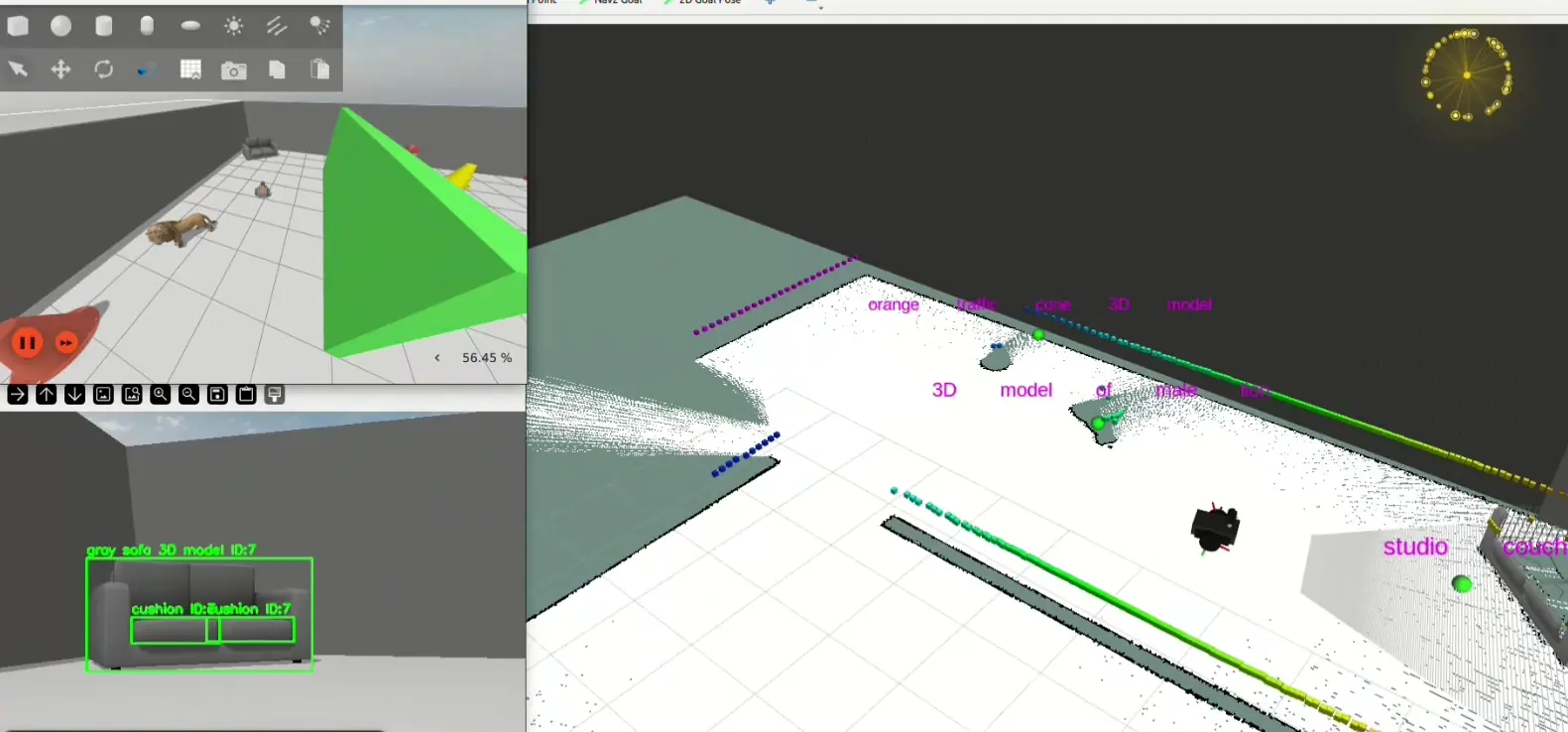 Moving beyond simple bounding boxes, I utilized a small VLM to extract rich, high-fidelity descriptions of the environment and bounding box on object. This integration allows the robot to understand visual context and identify unique object attributes—such as color, texture, and state—creating a "meaning-aware" semantic map rather than just a geometric occupancy grid.